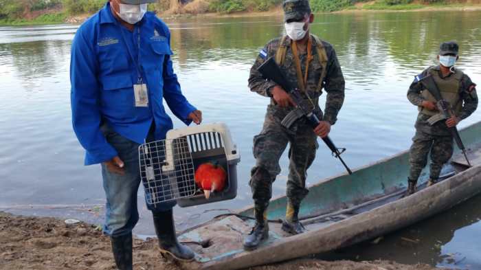 El equipo del Instituto de Conservación Forestal, Áreas Protegidas y Vida Silvestre (ICF) en conjunto con la fiscalía y coordinando con los patrulleros del proyecto Apu pauni lograron retornar este individuo a Honduras. Dentro de poco está guara será evaluada en el centro de liberación Apu pauni y posteriormente se realizará una liberación suave en los bosques de pino y latifoliado de Mabita y Rus Rus.