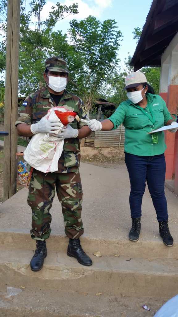 El equipo del proyecto Apu pauni en conjunto con las autoridades locales, ICF y Militares de Puerto Lempira lograron rescatar un individuo de Ara macao que se encontraba en la posta fronteriza en Nicaragua. La guara roja fue rescatada por las fuerzas militares de Nicaragua y gracias al anillo que lo identifica como parte de las guaras rojas del proyecto Apu Pauni, en Mabita y Rus Rus en el Territorio Indígena FIZMOS pudo retornar a Honduras.